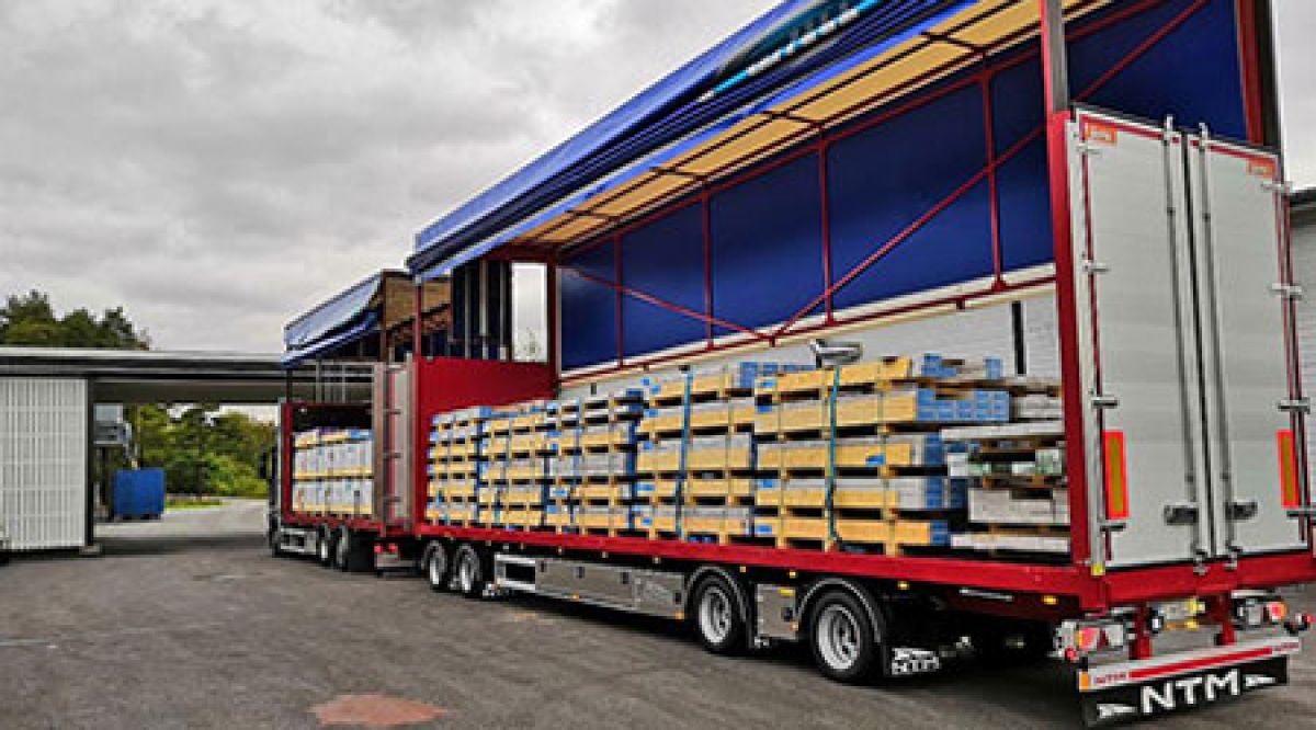 Lastaus ja purku onnistuu molemmilta puolilta sekä lisäksi yhdistelmä on varustettu pitkillä ajorampeilla, mikä mahdollistaa konekuljetukset tiettyyn kokoluokkaan asti säältä suojassa.