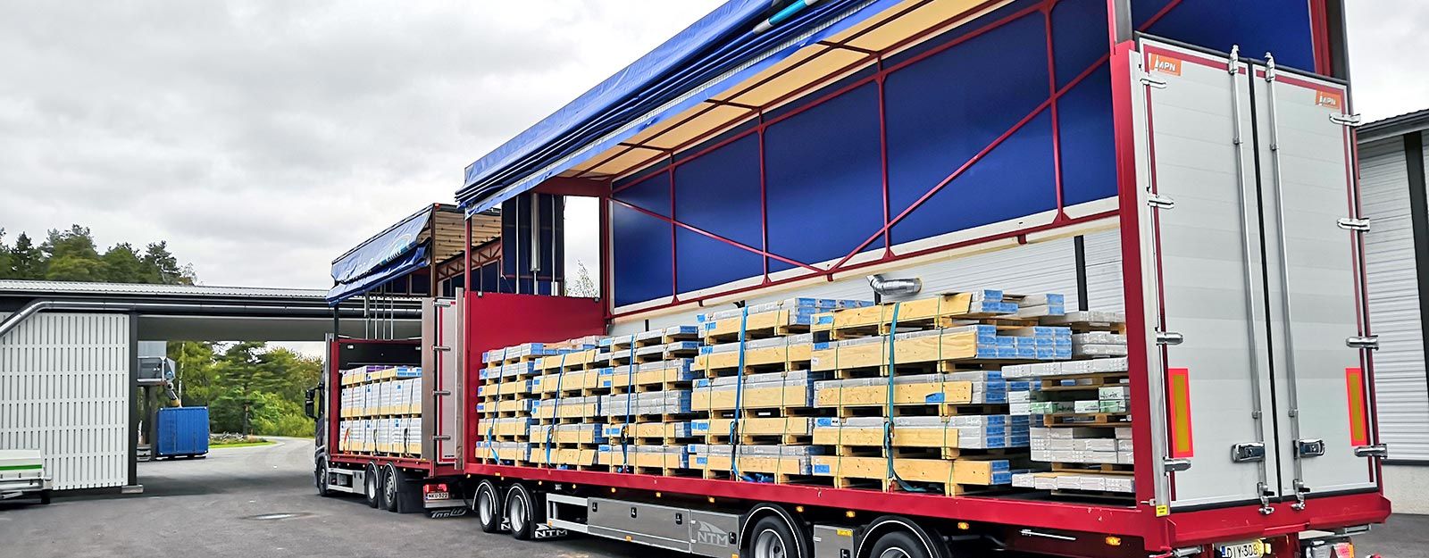 Lastaus ja purku onnistuu molemmilta puolilta sekä lisäksi yhdistelmä on varustettu pitkillä ajorampeilla, mikä mahdollistaa konekuljetukset tiettyyn kokoluokkaan asti säältä suojassa.